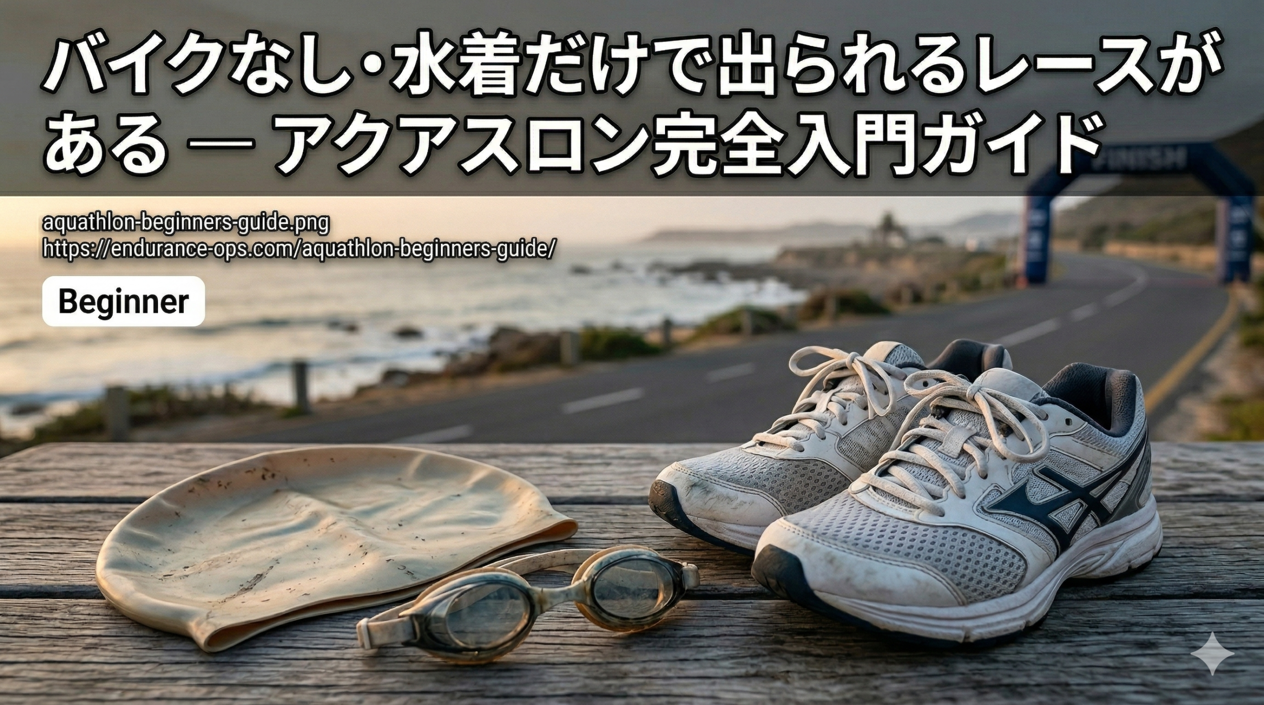 アクアスロンとは、スイム(水泳)とラン(ランニング)の2種目を連続して行う持久系スポーツです。トライアスロンからバイクを除いた競技で、水着とランニングシューズがあれば参加できます。この記事では、226km完走トライアスリートの筆者が、アクアスロンの基本・距離・費用・トライアスロンとの違い・初参加の体験談をまとめました。