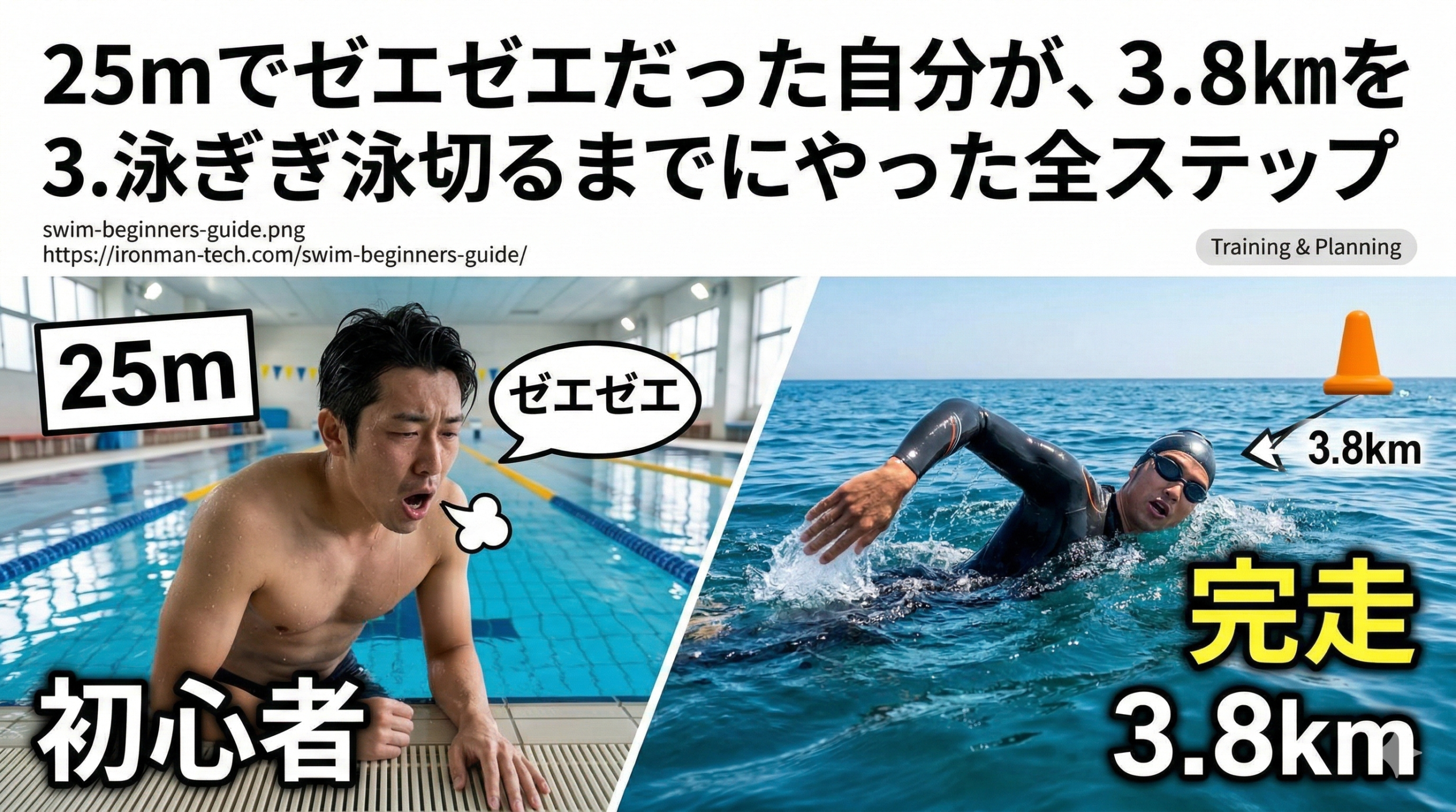 この記事では、泳げない人が「最初にやるべき順番」 をすべて公開します。焦らず、この順番通りに進めば、誰でも3.8km完泳は可能です。