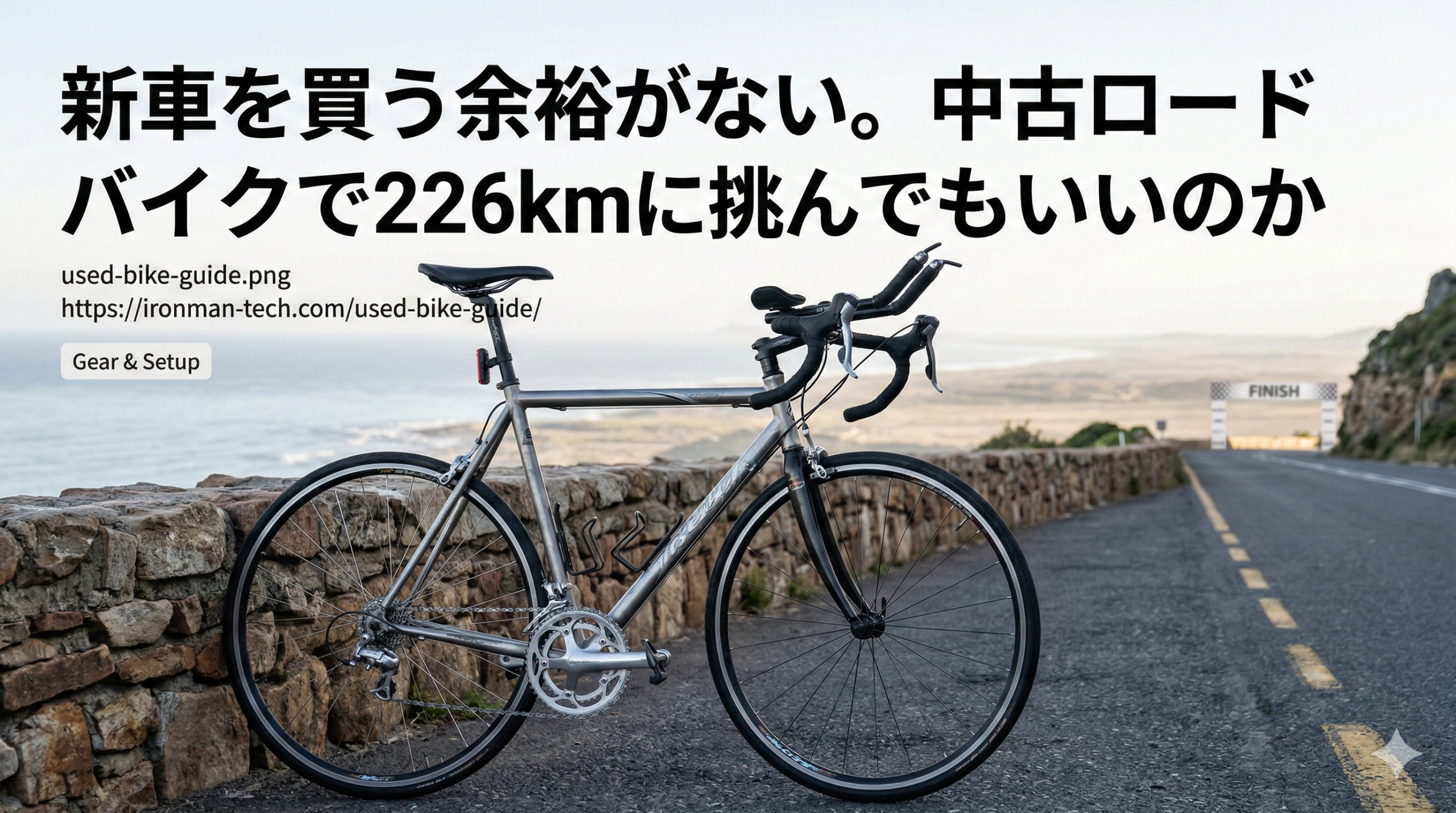 ネットで調べるほど不安になる。TTバイク80万、ホイールだけで30万。普通に暮らしてる会社員には現実味がない。結局、僕は中古のロードバイクを18万円で買って、それで226km走り切った。この記事は、あの頃の自分に向けて書いている。